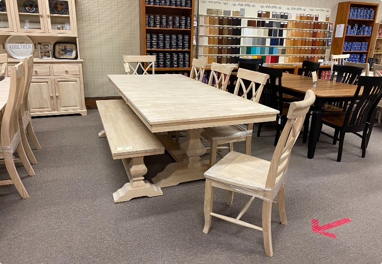 Unfinished Furniture Outlet offers a unique furniture shopping experience. From the moment you walk in our store, you’ll see quality, well made real wood furniture in a variety of wood species and styles. We are a family owned business that is committed to providing our customers with quality solid wood furniture along with superior customer service. Our knowledgeable staff is ready to help you select from our extensive collections of Real Wood Dining, Bedroom, Office, Bookcases and Outdoor Furniture. Whether you are furnishing a new home or looking for additional pieces to complete your exisiting decor, we proudly offer solid wood furnishings that can be customized to suit your taste or specific need.