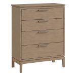 The sleek, contemporary styling of our 1135 Bailey 4-Drawer Chest will complement any modern bedroom decor. Made of solid alder hardwood and built using timeless construction methods such as mortise and tenon joinery and English dovetail drawers, this chest of drawers is built to handle all of your clothing storage needs. Two updated finish options allow you to create your own look. Our nutmeg finish offers a warm, spice colored option or choose the Almond finish for a cool, neutral beige wood tone. Whittier Wood prioritizes safety and has long been a leader in providing Anti-tip safety tethers. This chest meets or exceeds all ASTM anti-tip safety standards.