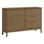 The sleek, contemporary styling of our 1147 Bailey 60″ Low Dresser will complement any modern bedroom decor. Made of solid alder hardwood and built using timeless construction methods such as mortise and tenon joinery and English dovetail drawers, this dresser is built to handle all of your clothing storage needs. Two updated finish options allow you to create your own look. Our nutmeg finish offers a warm, spice colored option or choose the Almond finish for a cool, neutral beige wood tone. Whittier Wood prioritizes safety and has long been a leader in providing Anti-tip safety tethers. This chest meets or exceeds all ASTM anti-tip safety standards.