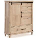Enhance your bedroom’s rustic appeal with our farmhouse chest. The sliding door, slat panels and rustic hardware accents epitomize the practicality of country living.