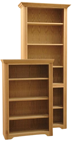 Oak or Maple Vintage Bookcases have adjustable shelves and are available in many standard sizes. Use individually or with flush molding and place side by side to make a Wall Unit. Vintage Bookcases have fluted side rails and a large crown molding . These units are made in Texas and can be customized to fit your space. Pricing is for 12″ standard depth bookcases in our most popular widths and heights. Don’t see the size you need? Please contact us for pricing.